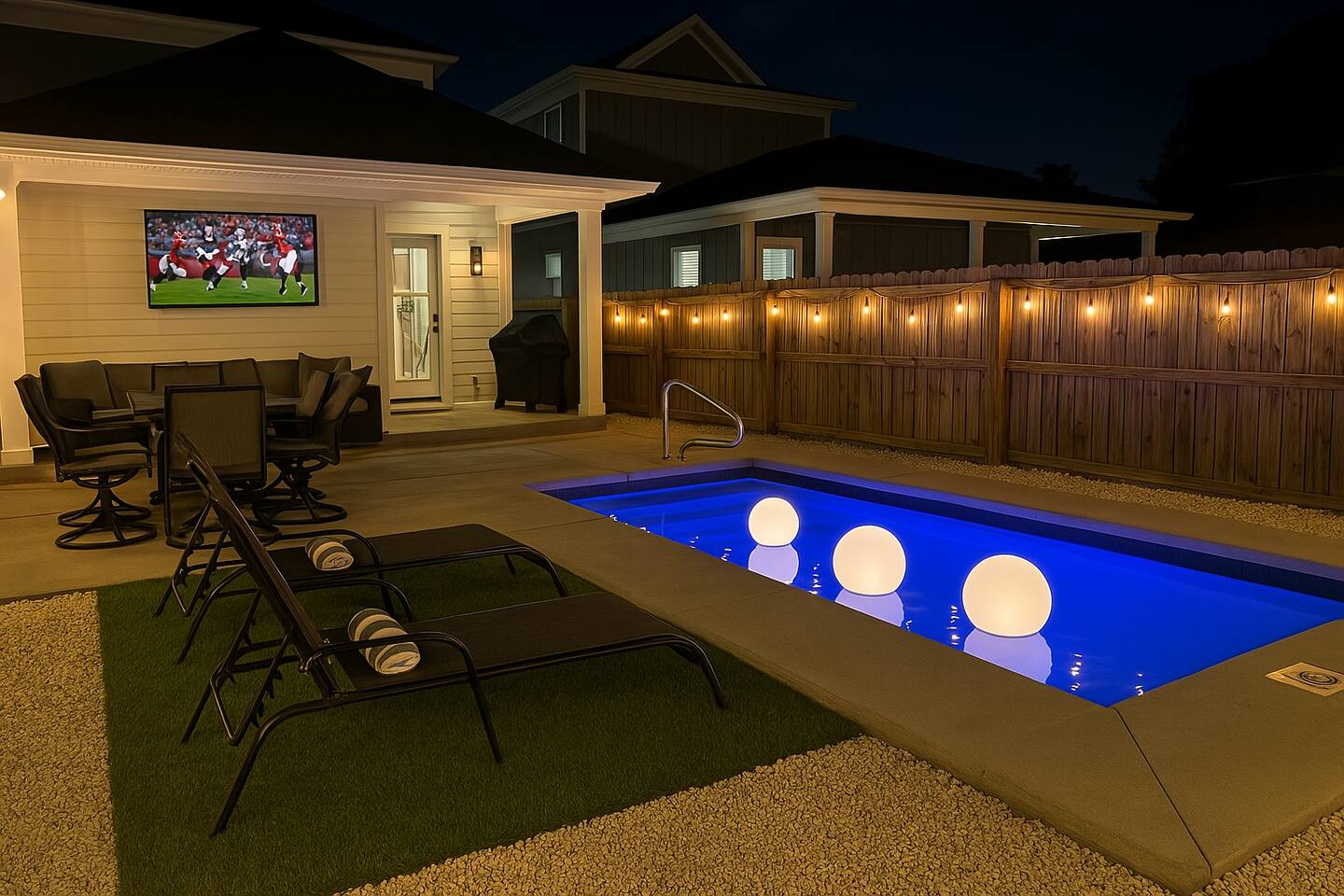 Space: Our home is a luxurious and yet comfortable space. The layout is perfect for entertaining, relaxing, and making memories. Each king bed bedroom has a television to ensure you're able to get some privacy in your own space when needed. On the main floor is plenty of space for entertaining and in the backyard you'll find a pool for relaxing. The pool can be heated in the cooler months. Bed layout: 1st Floor: 1 Room with King bed Living room : Daybed with trundle bed (Twin) 2nd Floor: 2 Rooms w/ King beds. 1 Room with double bunk bed with modified trundle (it's a big mattress instead of a classic trundle - so more comfy :) Pack and play available.